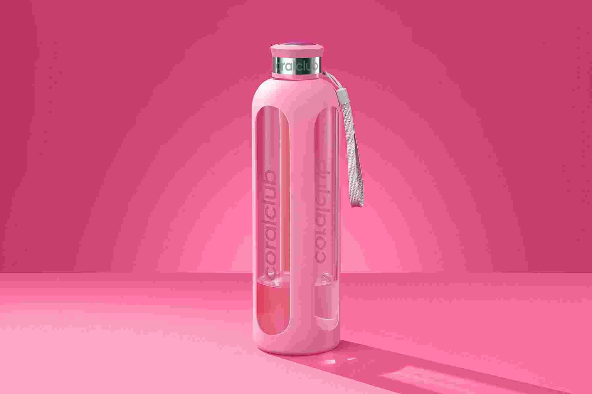 Botella de vidrio "ClearWater", rosa, 1000 ml