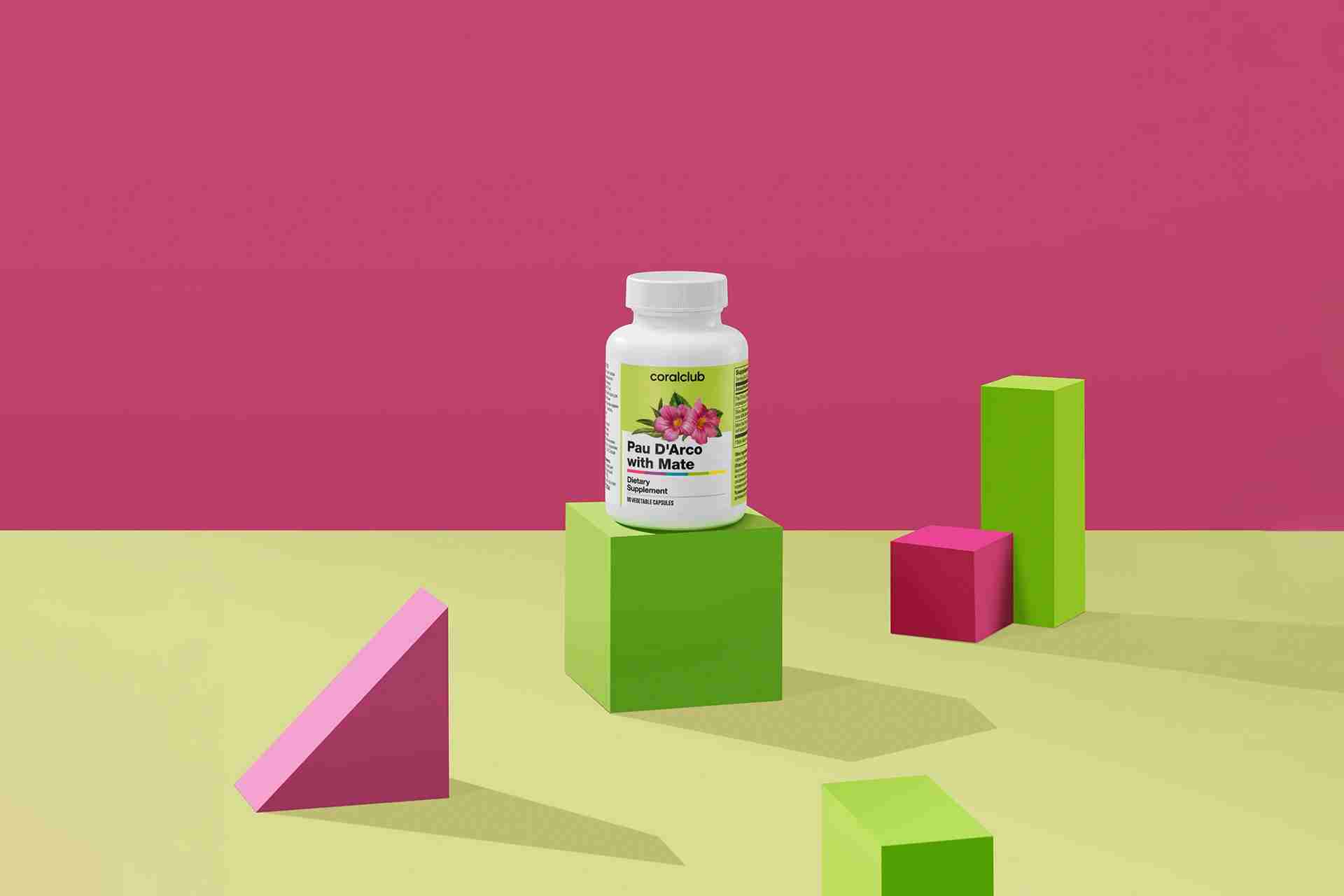 En el complemento alimenticio Pau D'Arco with Mate, el extracto de Pau D'Arco está combinado con extractos de mate y hojas de olivo.