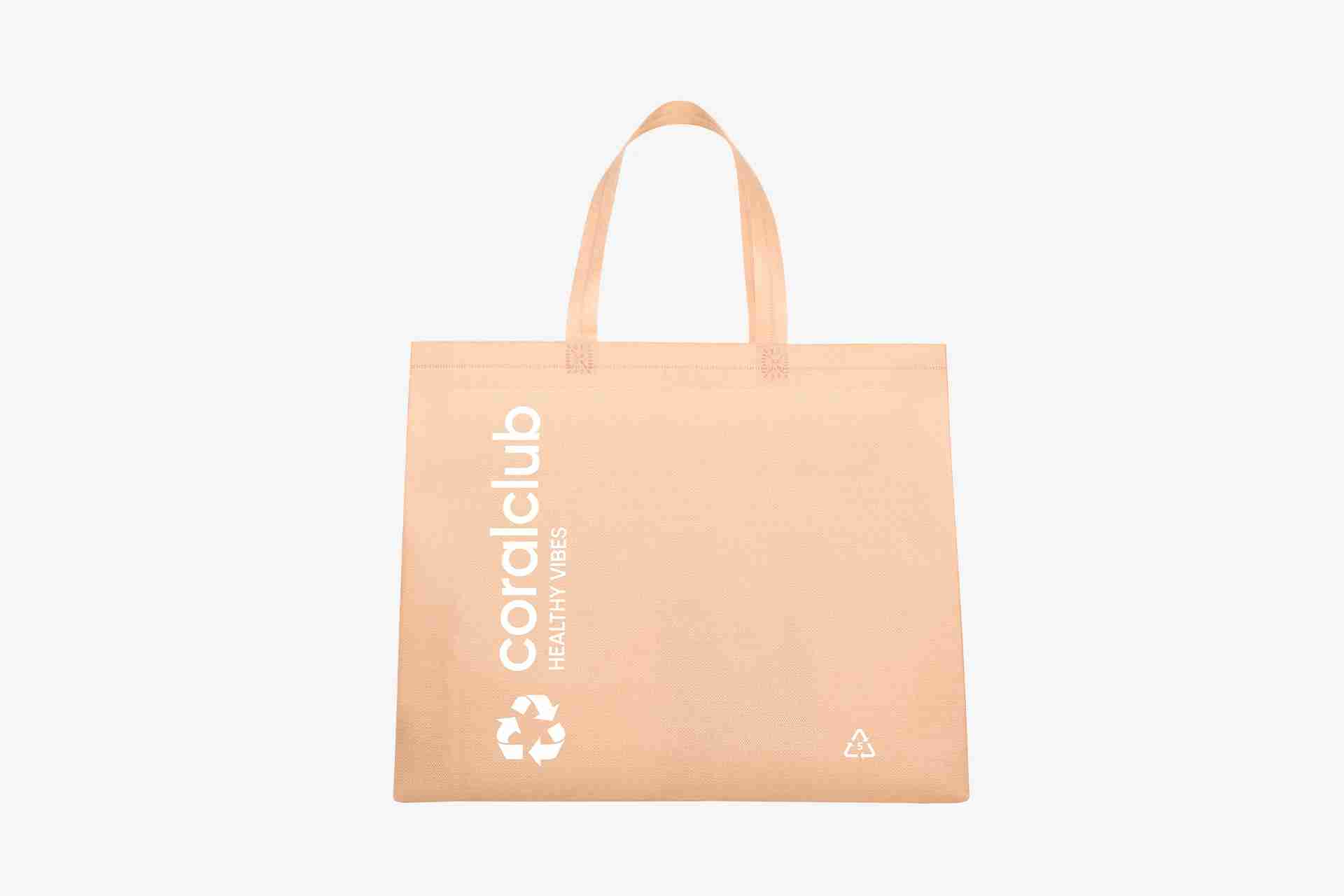 Bolsa de tela spunbond resistente y reutilizable con asas largas e integradas.